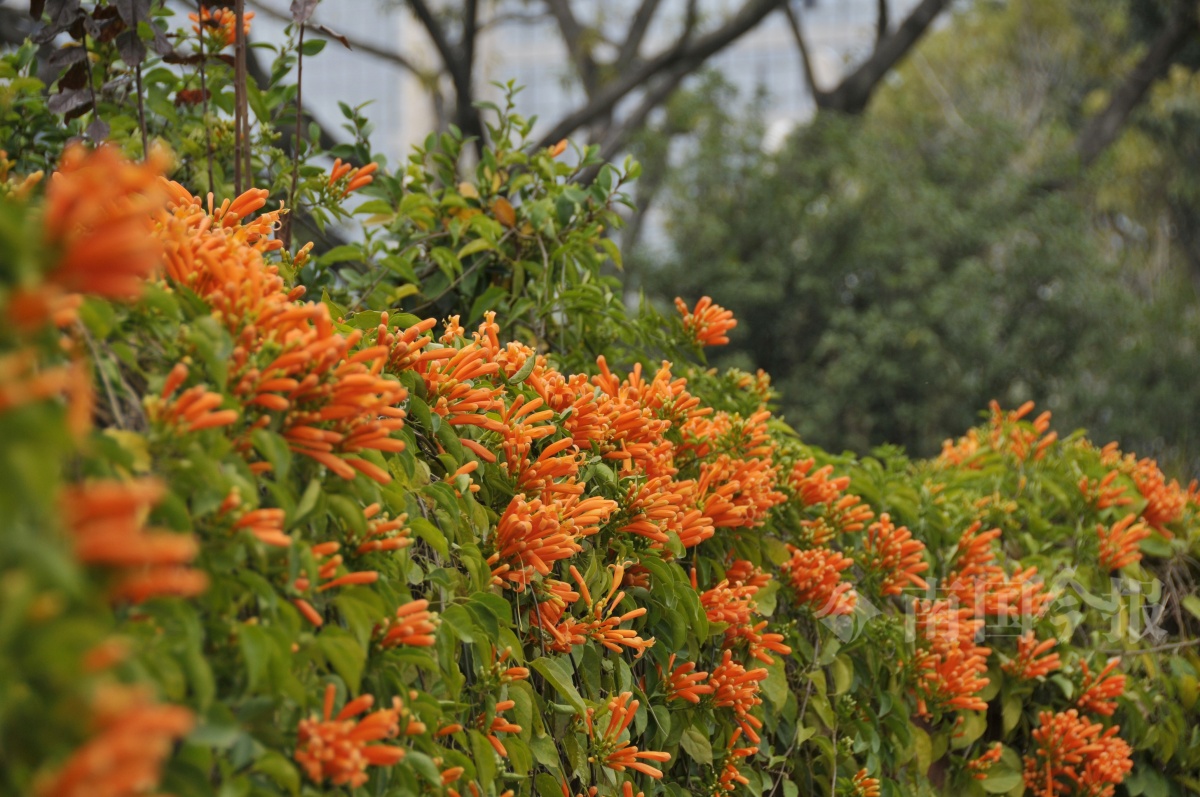 作为紫葳科炮仗藤属的常绿藤本植物,炮仗花有着独特的开花习性:单朵花期虽短,但整串花序次第开放,这种“接力式”的绽放方式,使得花期可延续数月之久,从冬到春,尽显灿烂繁盛。