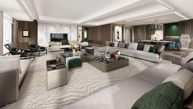艺术瞰景之境:当空间为艺术与生活共生载体,建面约270㎡无界艺境,挣脱物理尺度羁绊,将时代峰层精神图景,凝练成无界艺境叙事。以寰幕窗景为天然取景器,将湿地公园的生态意韵、城市繁华与天际线的辽阔诗意,晕染成流动的全景长卷。居者临窗而立,仿若置身云端高台,尽览城市万象与自然浩渺。奢材匠制:真正的奢侈,是目之所及与未现传奇的共臻完美。室内空间荟聚全球奢石,肌理如泼墨的塞埔路斯灰、凝练月光的芬迪白、蓝调夜色浸染的芬迪蓝、古典雅致的希腊白木纹和远古绿……每一片奢石皆是自然天成的艺术藏品。